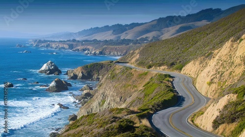coast, sea, cliff, road, landscape, ocean, nature, travel, scenic, horizon, water, wave, rock formation, blue skies, adventure, exploration, road trip, summer, leisure, tour tourism, shoreline, breathtaking, calmness, coastline, driving, panorama, beauty, outdoors, serenity, mountain, geology, destination, highway, vibrant, photo, sunshine, ecology, peaceful, environment, fresh air, majestic, natural beauty, pacific coast, vacation, holiday, scenic route