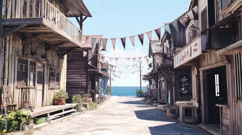 coastal, town, street, ocean, sea, building, wooden, banner, flag, sky, water, marin, calmness, architecture, pathway, summer, nature, sunlight, village, tour tourism, travel, landscape, open, view, relaxing, inviting, horizon, rustic, charme, peaceful, urban, bungalow, adventure, exploration, escape, leisure, destination, historic, quaint, vibrant, scenic, beauty, get-away, remote, picturesque, atmosphere