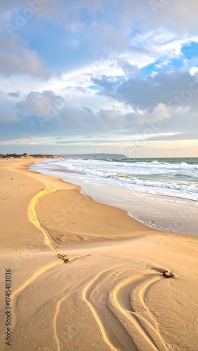 beach, ocean, wave, sand, shoreline, coast, cloud, sky, sunlight, gold, landscape, scenic, nature, outdoors, travel, summer, tranquil, horizon, water, idylli