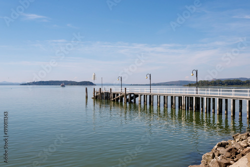 harbor, breakwater, lakeshore, adventure, blue, boat, coast, destination, dock, european, holiday, horizon, italian, italy, lake, landmark, landscape, nature, navigation, peaceful, pier, scenic, shore, summer, sunny, tour tourism, transport, travel, umbria, view, village, water, waterfront