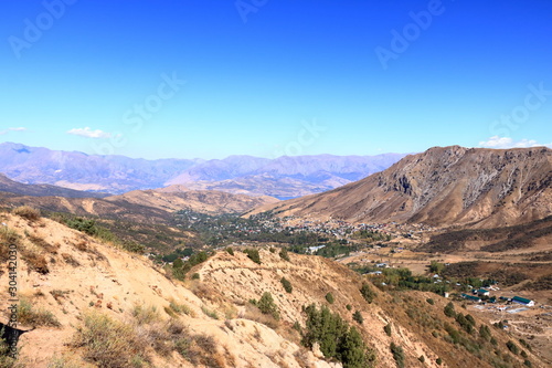Scenic landscape of Tian Shan mountain range near Chimgan in Uzbekistan