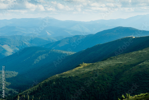 no people, mountain, mountain, carpathians, background, outlook, hazy, tonality, top, peak, summit, panorama, skyline, outline, silhouette, mount, ridge, gorge, slope, hill, rock, park, aerial, high, vale, green, blue, sky, cloud, heaven, forest, tree, grass, sunlight, landscape, view, nature, outdoors, beauty, scenery, scenic, travel, hiking, tour tourism, wilderness, freshness, magnificence, summer, shadow