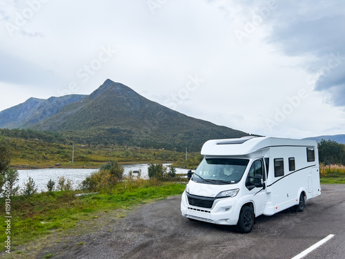camper, van, motorhome, recreational vehicles, norge, landscape, mountain, lake, travel, adventure, road, trip, scenic, nature, outdoors, freedom, wanderlust, exploration, tour tourism, vacation, holiday, lifestyle, vehicle, transportation, automobile, driving, journey, destination, view, scenery, picturesque, tranquil, serene, peaceful, cloud, sky, autumn, fall, wilderness, remote, escape, recreation, leisure, camping, caravanning, mobile, home, parking, parked