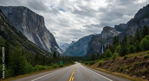 mountain road, road trip, hi-res, road, mountain, vale, forest, cloud, sky, travel, adventure, highway, scenic route, open road, driving, explore, discover, beautiful, breathtaking, stunning, serene, peaceful, calm, tranquil, image, picture, stock photos, photo, download, print, wallpaper, background, yosemite, national park, california