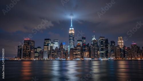 city, skyline, night, light, water, urban, architecture, skyscraper, cloud, dark, modern, view, scenic, photo, new york city, metropolis, landscape, travel