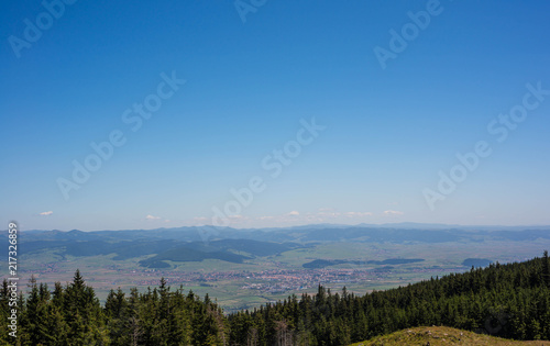 Scenic small town view from the Carpathian mountains in Romania.