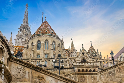 Scenic sunset view of Fisherman Bastion fortress in Budapest