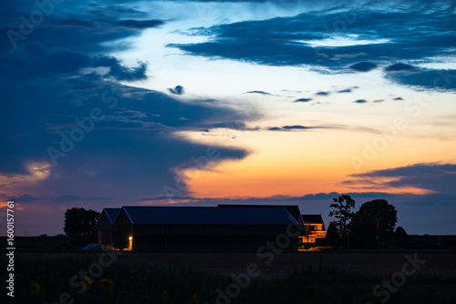 scenic, evening, sunset, dusk, farm, silhouette, twilight, cloud, colourful, sky, landscape, agriculture, cloud, cloudscape, colours, orange color, atmosphere, mood, rural, scenery, outline, travel, sunrise, light, view, colours, idylli, background, dramatic, outdoors, sunlight