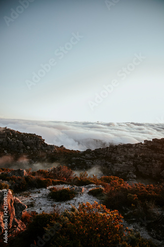 table mountain, mountain, rock, rock formation, grass, plant, sunset, sky, cloud, elevation, high, summit, scenic, nature, calmness, landscape, idylli, majestic, travel, nobody, no people, outdoors, cape town, africa