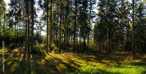 scenic, view, green, pine, forest, sunny, day, nature, landscape, outdoors, grass, shrub, bush, bark, tree, wood, botanical, plant, branch, foliage, leaf