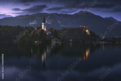 mountain, lake, landscape, highland, duck pond, island, scenery, sunny, sunset, rocky, rock, slovenia, twilight, spectacular, breathtaking, water, nature, peaceful, formation, tranquil, magnificent, majestic, picturesque, environment, terrain, vale, idylli, range, marvellously, dusk, destination, ridge, wild, natural, location, blue skies, cloudy, outdoors, horizontal, heritage, castle, landmark, travel, tour tourism, sky, beautiful, scenic, church
