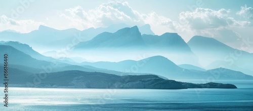 Scenic View of Seascape and Mountain Range with Blurred Background and Space for Text