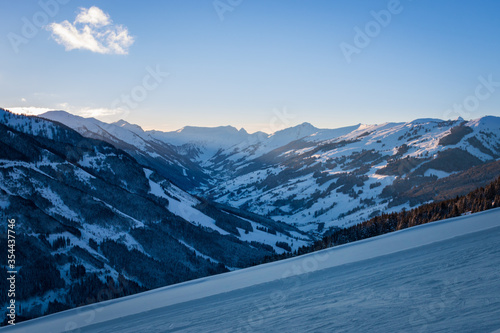 Scenic view of ski region Saalbach Hinterglemm in the Austria alps .