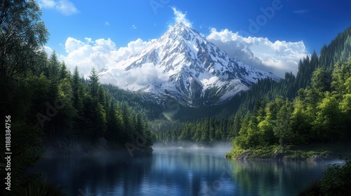 scenic, view, towering, mountain, surrounded, by, lush, green, forest, lake, nature, landscape, sky, cloud, calmness, travel, adventure, beautiful, serene, scenic beauty, wilderness, water, peaceful, summer, hiking, journey, exploration, natural wonder, majestic, sunlight, vibrant, high-coloured, foliage, river, ecosystem, greenery, pine, panorama, untouched, breathtaking, highland, scenery, sky blue, daylight, rich, idylli