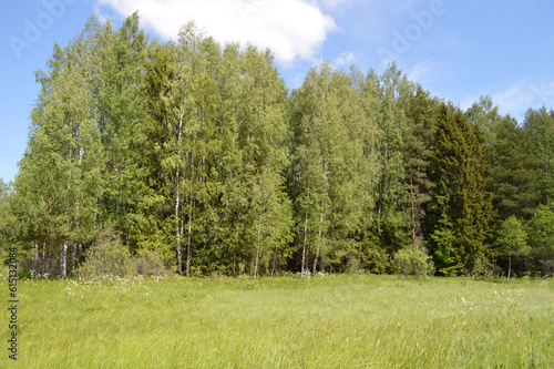 Scenic view on the field and forest
