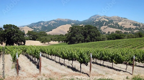 vinery, row, mountain, landscape, view, grape, nature, farmland, agriculture, scenic, green, vale, california, hill, sunny, countryside, plant, fresh, wine, harvest, rural, beautiful, horizon, expansive, lush, growth, farming, summer, hillside, production, expanse, dry, arable, terrain, crop, rolling, vine, trellis, fruit, farm, healthy, abundant, cultivated, sunlight