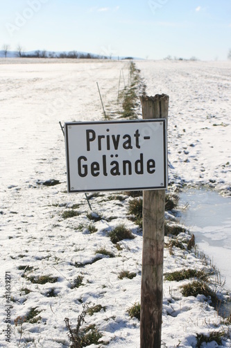 private, plate, snowscape, symbol, signs, terrain, field, field, winter, roadsign, outdoors, countryside