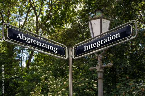 integration, boundary line, refugee, alien, integrate, politic, right, together, xenophobia, racism, discrimination, dignity, cohesion, democracy, collective, corporation, culture, contrast, opposite, roadsign, plate, signpost