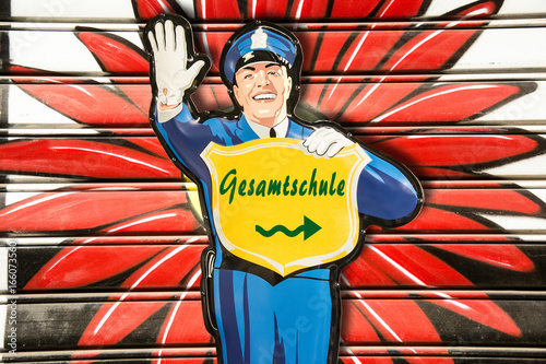 comprehensive school, school, roadsign, plate, signpost, shape, enrollment, option, gym, merging, pupil, schoolgirl, teacher, didactic, schooling, school