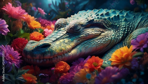 crocodile, alligator, animal, wildlife, nature, portrait, face, sleep, sleep, flower, rest, dream, relax