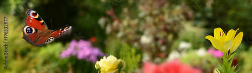 butterfly, countryside, garden, nature, spring, summer, may, season, flower, flower, flower, insect, colourful, banner, panorama, fly
