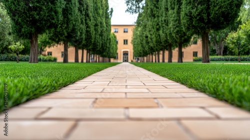school, pathway, lined, tree, view, grass, tile, building, landscape, nature, tranquil, architecture, serene, greenery, setting, garden, paseo, scene, fresh, inviting, light, colours, beautiful, bright, vibrant, sunny, large, expansive, peaceful, natural, environment, symmetry, perspective, ambience, entrance, horizon, depth, tree trunk, foliage, sunny day, classic, elegant, historic, academic, charme