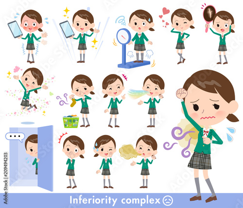 woman, people, student, youth, uniform, blazer, school, complex, impatience, stress, presentation, speech, gain weight, weight, diet, fat, slim, bald, hair, smell, stinky, halitosis, foot, conversation, breath, sock, cleaning, perfume, shy, ashamed, frightening, surprised, character, sweet, flat, affinity