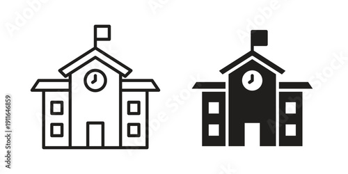 vector, high, set, outline, elementary, icon, line, school, stroke, building, public, hall, design, illustration, background, apartment, house, solid, collection, city, primary, academy, graphic, class, town, front, black, structure, website, museum, concept, art, construction, campus, web, white, isolated, home, symbol, pictogram, yard, university
