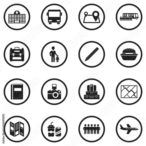 school, trip, icon, black, white, circle, academy, activity, aeroplane, bag, drink, event, excursion, field, children, baggage, object, pack, pen, road, route, summer, symbol, teacher, holiday maker, transport, travel, vacation, vector, holiday, illustration, isolated, set, signs, book, bus, camera, childhood, class, collection, food, global positioning system, design, discovery, social, student, flat, graphic