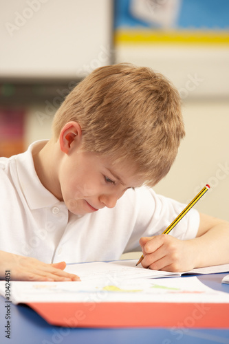 Schoolboy Studying In Classroom