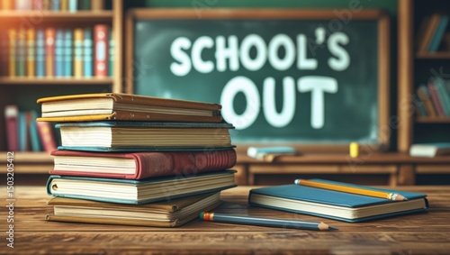 classroom, education, learning, blackboard, book, desk, summer, vacation, end, blackboard, teaching, student, notebook, relaxation, freedom, library, cognition, academic, study, stationery, cv, graduation, childhood, institution, furniture, quiet, sunlight, celebration, schoolwork, stack, reading, writing, interior, traditional, break, elementary, supply, sharpened, archive, morning, page, eraser, closeup, bright, transition, scholarly