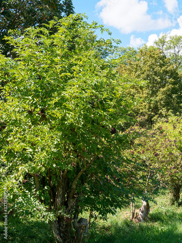 elderflower, holler, shrub, fruit tree, medicinal plant, comestible, age, black, purple, berry, hale, fruit, fruit, blood-red, stalk, twig, twig, leaf, leafage, flower head, food, pigment, jam, sirup, juice, flora, nature, environment