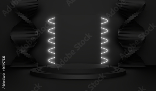 science fiction, neon, glow, dark, three-dimensional, platform, dais, perspective, wall, studio, triangle, background, product, realistic, clean, minimal, circle, geometric, illustration, scene, object, shape, racked, stage, white, pedestal, presentation, light, abstract, render, empty, blank, floor, electric, fluorescent, frame, glowing, illumination, lamp, laser, led, night, portal, simple, futuristic, rectangle