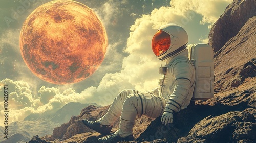 space, star, astronaut, future, retro, science fiction, planet, three-dimensional, illustration