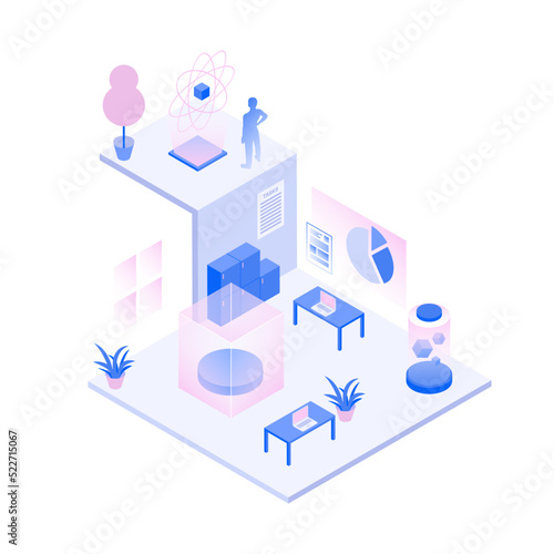 Science Office Isometric Metaverse Illustration. Vector illustration