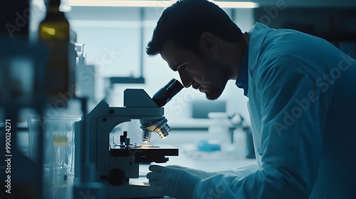 Scientist Using a Microscope in a Laboratory Setting