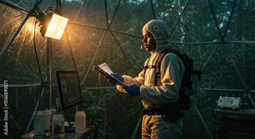 scientist, laboratory, night, research, experiment, technology, innovation, science, computer, clipboard, analysis, datum, environment, greenhouse, ecology, sustainability, exploration, discovery, equipment, professional, workspace, lighting, sharpened, concentration, nature, outdoors, study