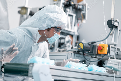 tech, factory, mask, production, industry, scientist, manufacturing, uniform, face, laboratory, automotive, device, electronic, automated, technology, conveyer, biology, dust, programming, chemical, face mask, innovation, computer, experiment, assembly line, equipment, biotechnology, analysis, manufacture, hygiene, engineering, professional, caucasian, machine, doctor, health, laboratory, virus, protection, science, men at work, safety, pandemic, medicals, management, man