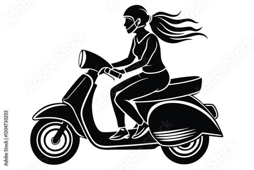 motorcycle, scooter, bike, motorbike, motor, vector, moped, illustration, transportation, woman, transport, ride, travel, vehicle, road, biker, speed, drive, cartoon, wheel, icon, fun, sport, riding