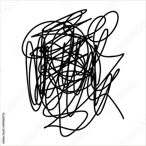 Scribble chaotic thin line. Doodle chaotic thread line, curls, swirls, twirl, thread, flourishes, chaotic lines. Simple vintage chaotic thread line element isolated on white. Drawn thread line