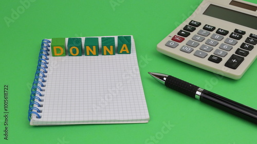 Scritta DONNA nella cultura italiana con quaderno su sfondo verde