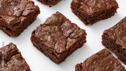 Scrumptious chocolate brownies set on a bright white background