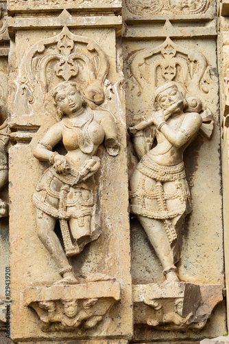Sculpture of Lord Krishna and Dancing Women on the Kedareshwara Temple, Dharmapuri, Beed Maharashtra India.