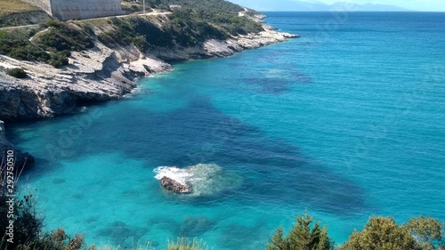 sea, beach, water, island, coast, blue, landscape, ocean, summer, nature, greece, bay, view, sky, travel, mediterranean, coastline, beautiful, seascape, panorama, shore, rock, green, europa, clear