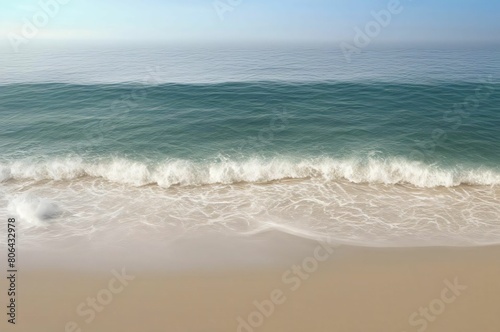 Sea and beach aerial view. Top view, amazing nature background. Beautiful beach of white sand surrounded by crystal clear water. Waves on the beach. Travel and vacation concept