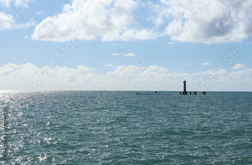 Sea and lighthouse of Ponta Verde beach, Maceio city, Alagoas state, Brazil.