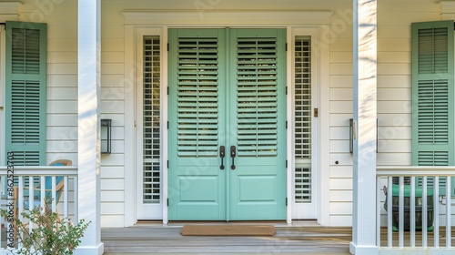 Sea foam Green Coastal Style Door with Louvers and Casual Design