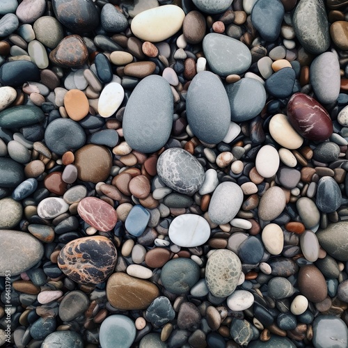 Sea stones, pebbles, top view, close-up