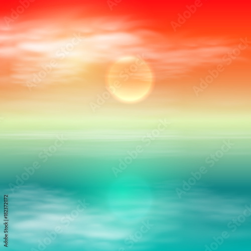 sunset, surface, sunlight, cloud, travel, calm, view, sunrise, red, yellow, sand, magic, holiday, bright, horizon, night, orange, glistering, summer, light, evening, lake, dusk, sun, wave, dark, season, heaven, over, rest, shiny, beach, wind, gold, colours, relax, beauty, outdoors, sky, dawn, sea, background, water, nature, coastline, vacation, landscape, ocean, blue