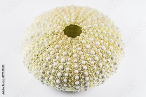 decor, urchin, sea, marin, ocean, design, decorative, shell, mollusc, creature, style, stone, gold, light, sphere, sea urchin, decoration, art, object, isolated on white, exotic, abstract, natural, white, background, nobody, still life, from above, horizontal, studio